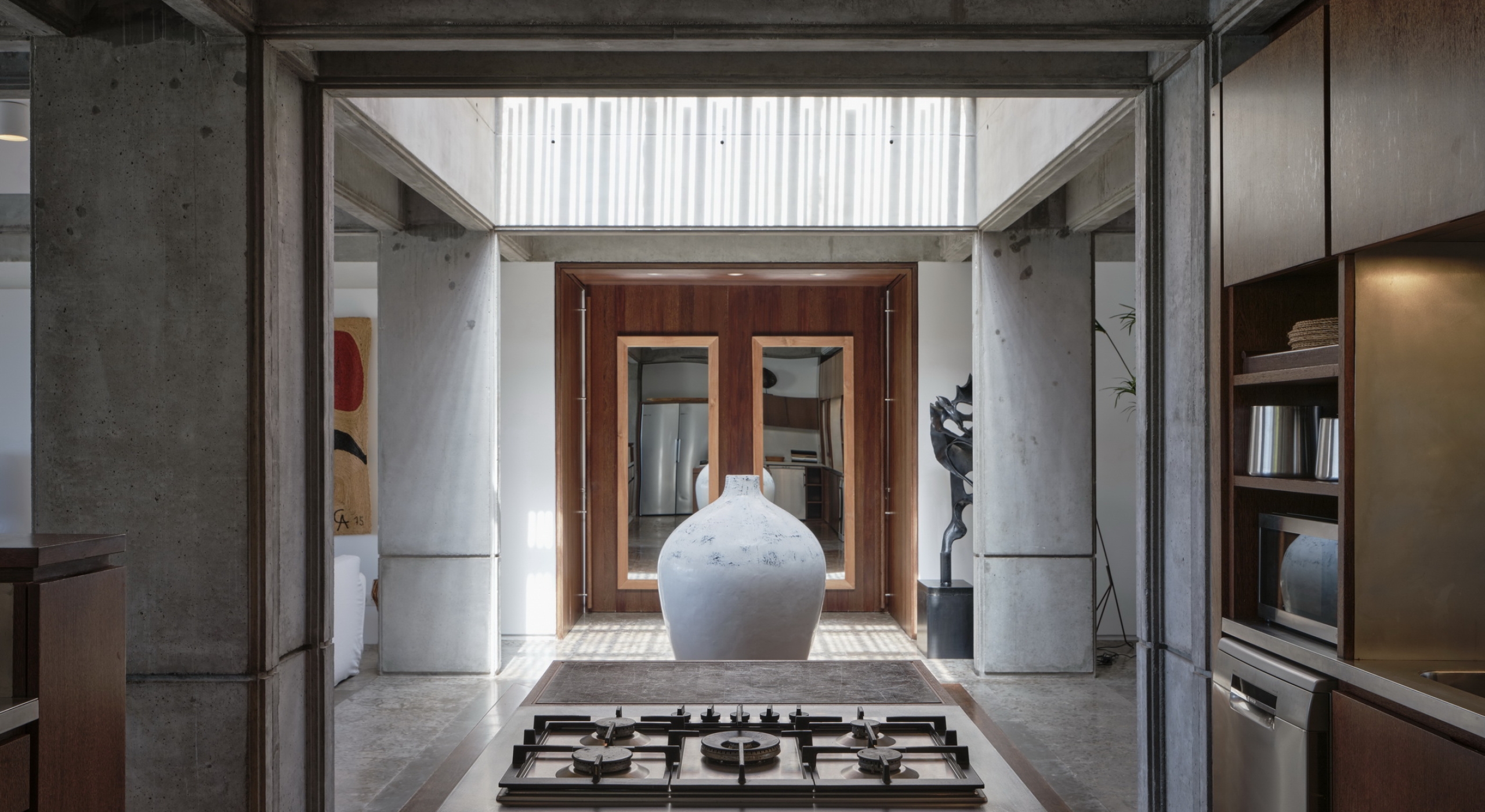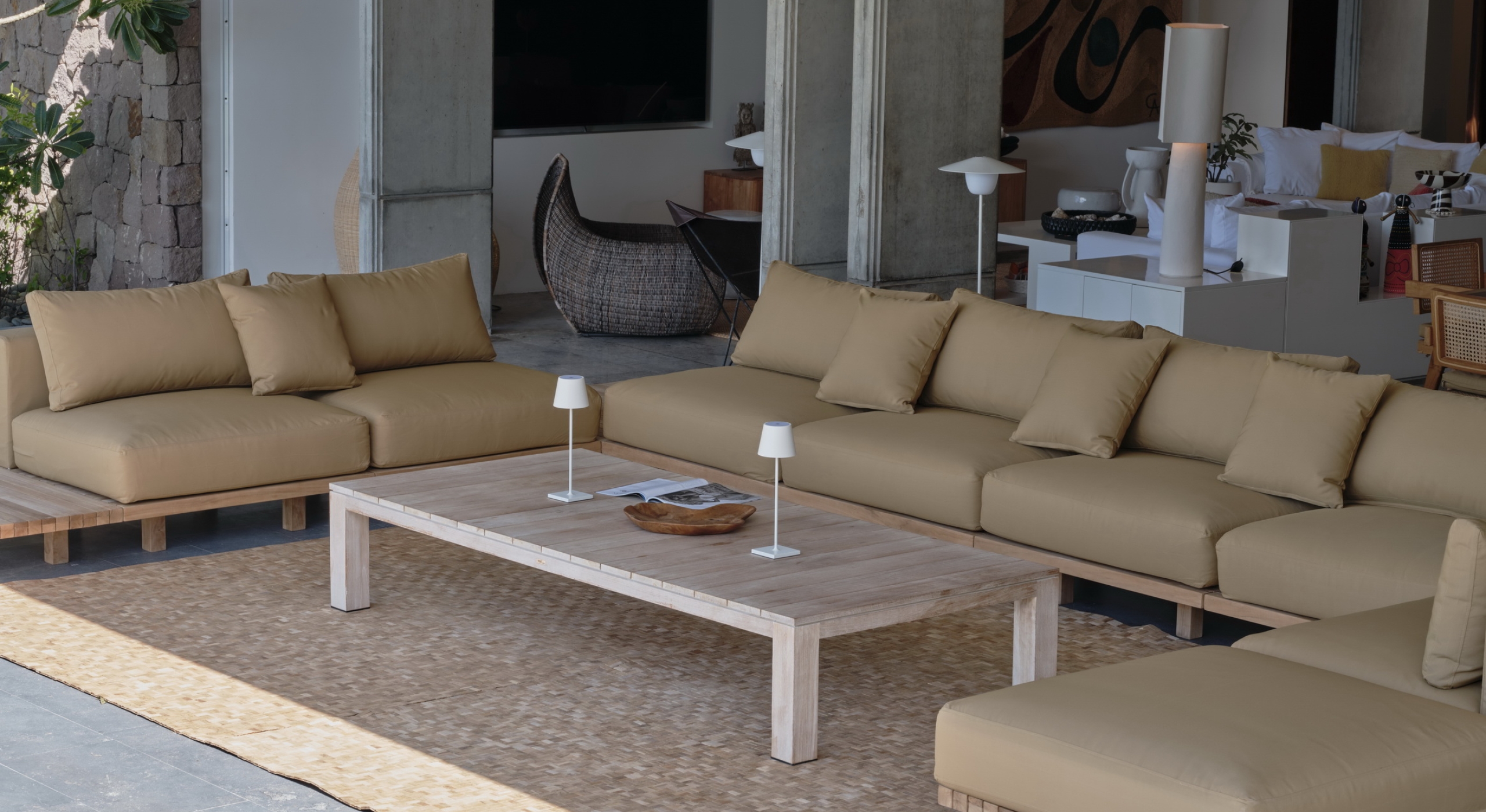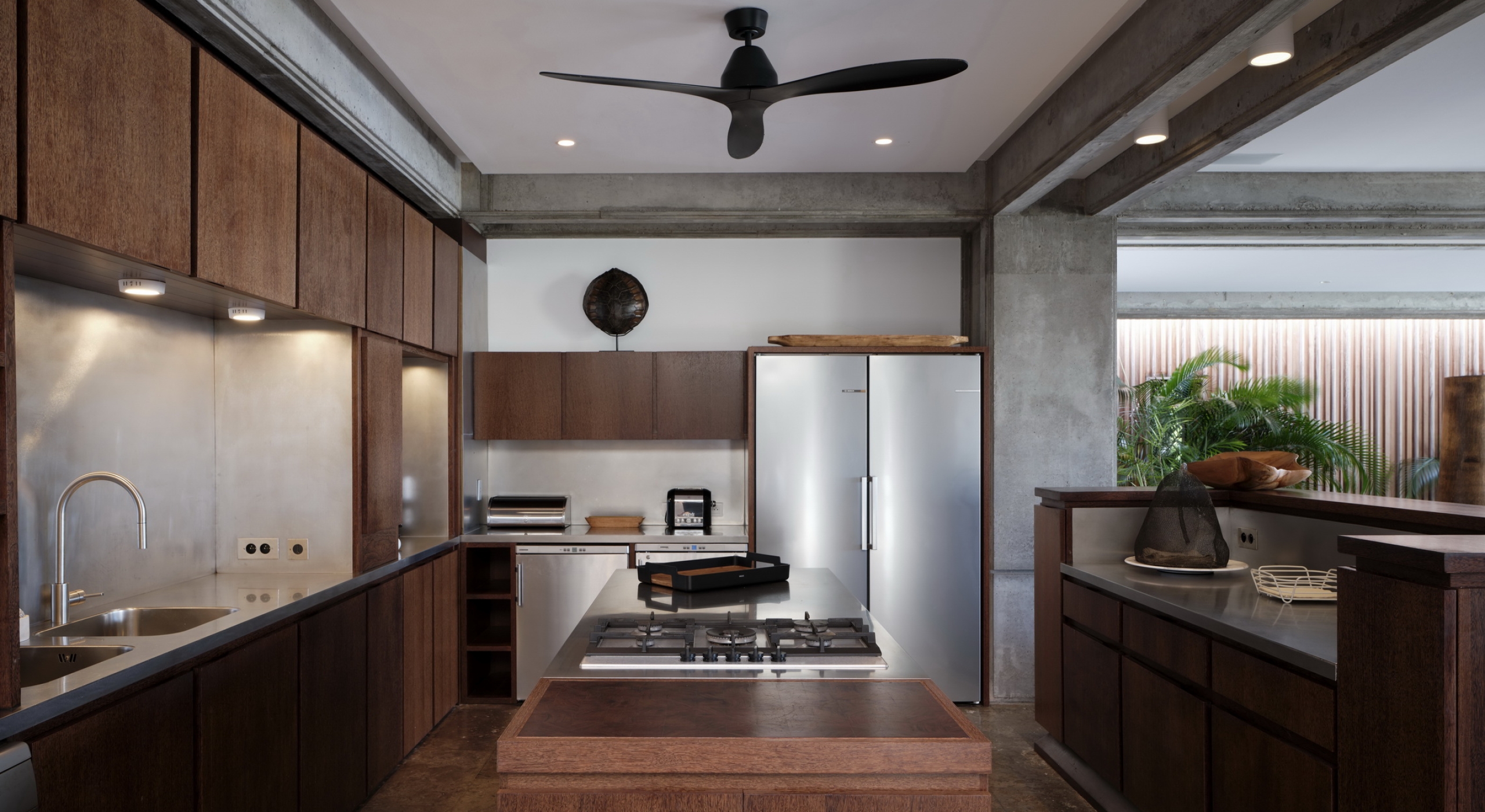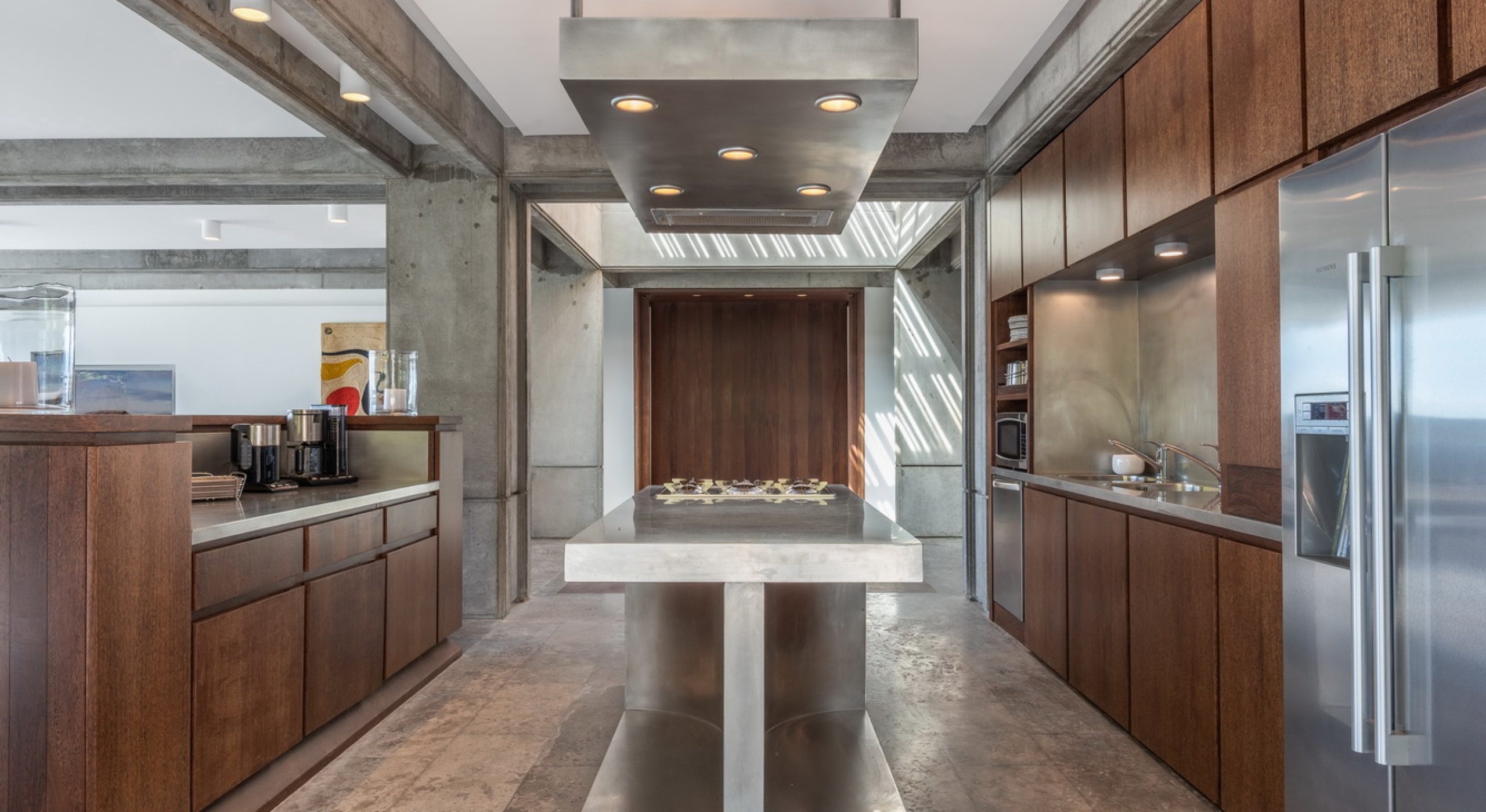 The large living room with American kitchen opens onto the outside, where there are spacious lounge areas and a magnificent infinity pool.